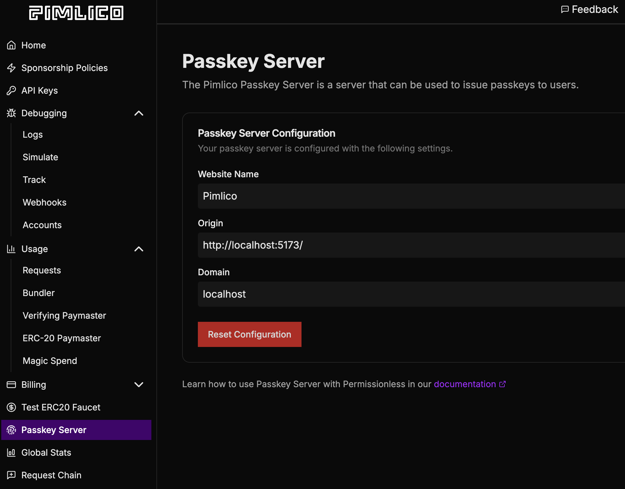 If you want to use Pimlico's passkeys server, visit Dashboard and configure your passkeys server.